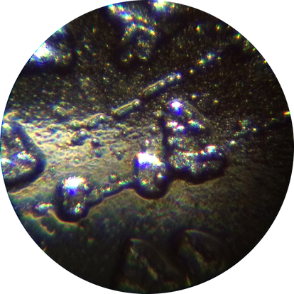 En manipulant une mixture d'eau salee et en l'observant au microscope, apparaissent différents paysages abstraits, évoquant l’infinité des possibles de la vie contenus dans une goutte d’eau de mer.